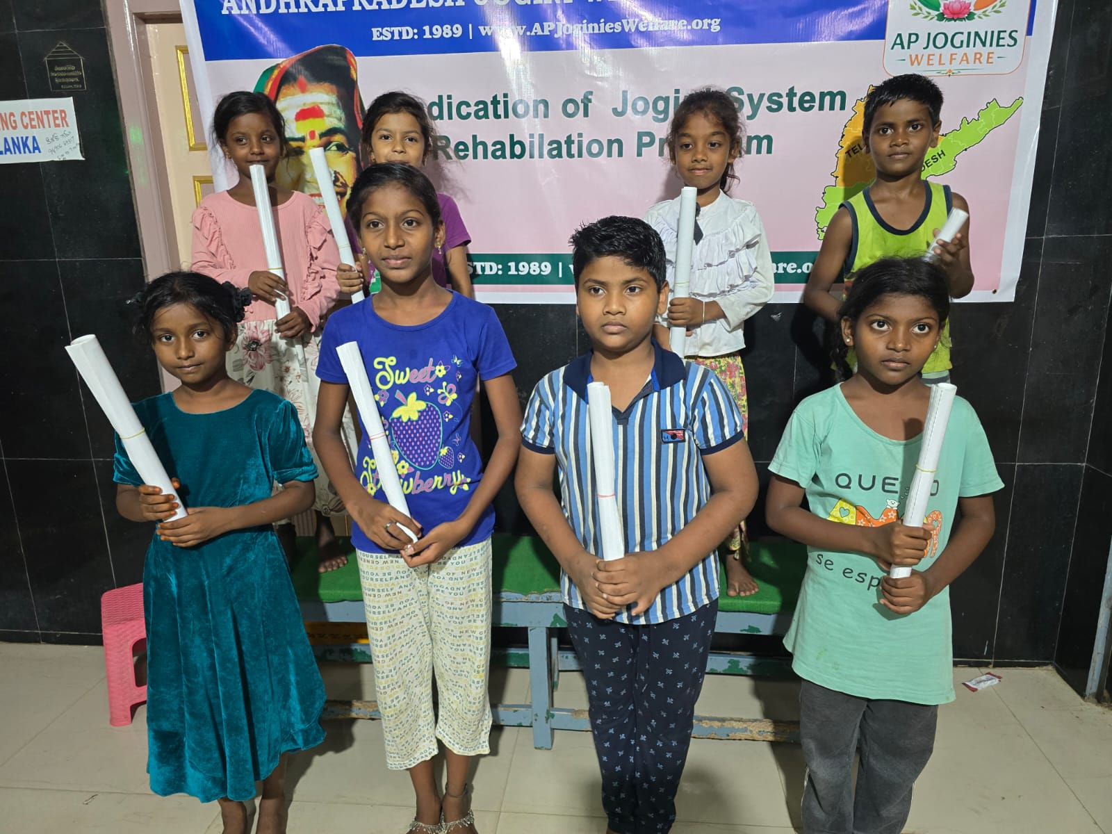 Supporting 500 jogini girls with school supplies and scholarships in Amalapuram region.